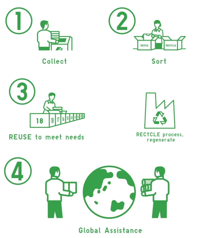 另外,優衣庫還強調稱,支援難民的童裝、嬰幼兒裝有約100萬件的缺口,因此將加強在“童裝、嬰幼兒裝”品類的回收。RE.UNIQLO 的“前身”是優衣庫在2006年發起的“全商品回收活動”,在添加“向難民捐贈服裝”、“重復使用(REUSE)”等環節的同時,逐步構建出當前的循環再利用(RECYCLE)體系。從消費者手中回收的衣物,除了捐贈、再生為新衣物之外,部分還會回收制成其它用途的材料,例如汽車隔音材料、固體燃料。