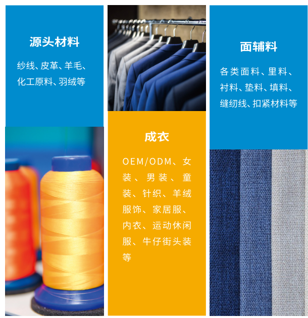 EFB服飾供應鏈展及同期展會展品涵蓋面輔料輔飾、ODM/OEM生產(chǎn)制造商、女裝、男裝、童裝、家居服飾、運動服裝、定制裝、職業(yè)團服、配飾、鞋履、箱包等。貫穿紡織服裝服飾產(chǎn)業(yè)鏈上下游,為生產(chǎn)商、品牌商及貿(mào)易商提供趨勢發(fā)布、展覽展示、信息交流、商貿(mào)合作和獲取訂單的渠道,深度挖掘行業(yè)新商機,是國內(nèi)外品牌、買手對接優(yōu)質(zhì)供應商的不二之選。