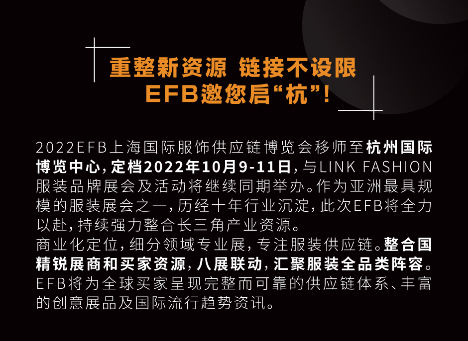 重整新資源,鏈接不設限!全新啟“杭”,EFB服飾供應鏈展就差你啦