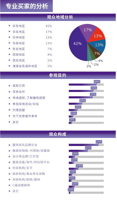 2024EFB服飾供應鏈博覽會(深圳)將繼續保持展品品類全面、分區精細科學的特點,聚焦熱門領域,全方位服務于服飾上下游供應鏈,對接服裝全品類源頭工廠,在展示最新時尚的同時,業界優質企業同臺競技,推動產品創新及資源共享,為生產商、品牌商及貿易商等提供一個充分交流的平臺。